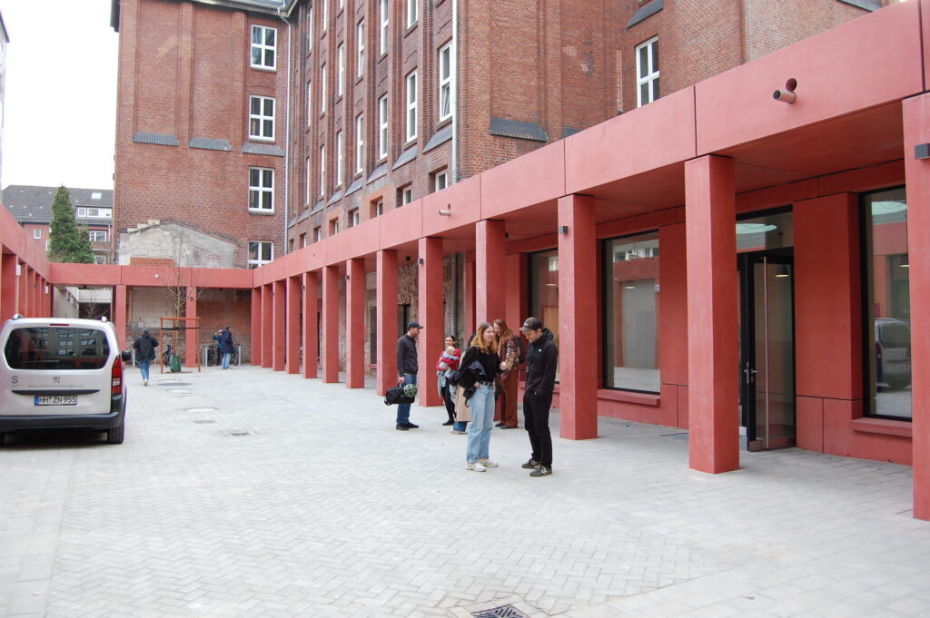 Natürlich gibt es auch Bedenken, zum Beispiel, dass die Notdurft wie früher in den kleinen Gärten der Anwohner*innen verrichtet werden könnte. Aber da hat Fördern und Wohnen als Träger des Pik As vorgebaut. Durch eine überbaute Toreinfahrt kommen die Klienten in einen großzügigen Innenhof mit zwei Arkadengängen sowie einem Wasserspender und im großzügigen Einlassbereich gibt es leicht erreichbar eine Toilette. Das heißt, bevor um 17 Uhr Einlass ist, müssen die Klienten sich nicht mehr auf der Neustädter Straße aufhalten, sondern haben den Innenhof zur Verfügung und sind auch bei Regen geschützt.